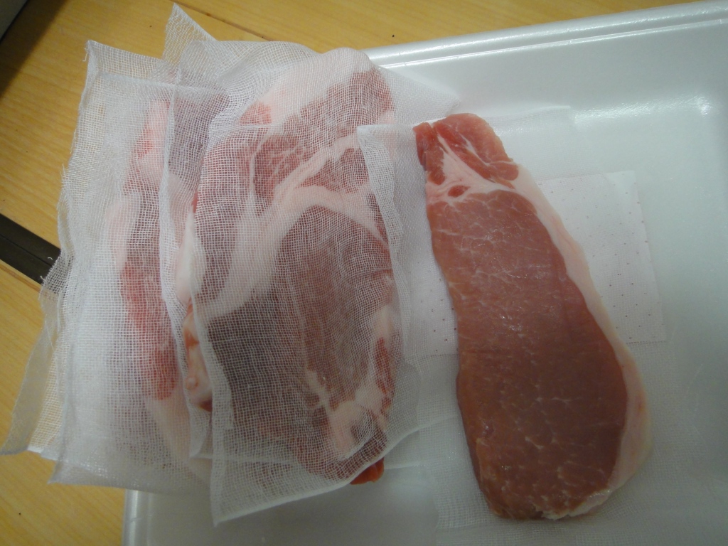 ● 豚ロースをガーゼで包んでおきます。