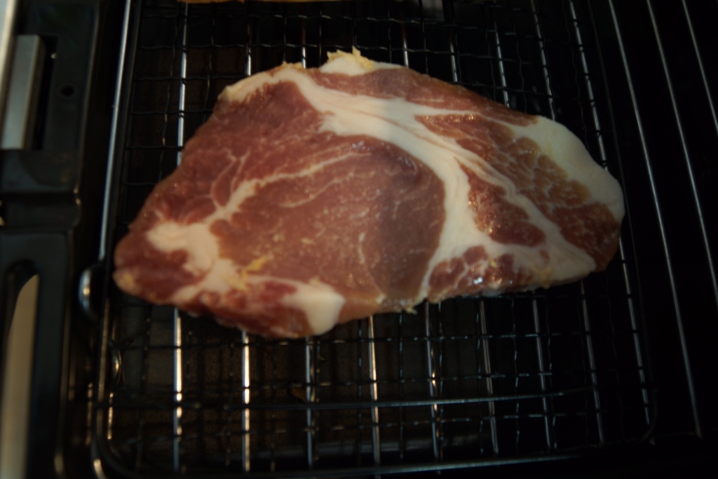 その上にガーゼに包んだ豚ロースをのせます。