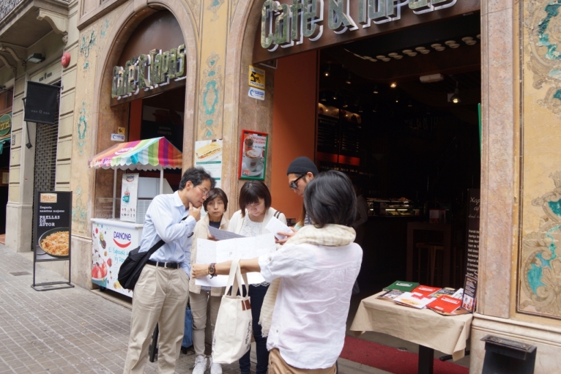 ↓ 社長の茶番劇。 皆にバルセロナの地理について教えている・・・ 感じ。の一枚。