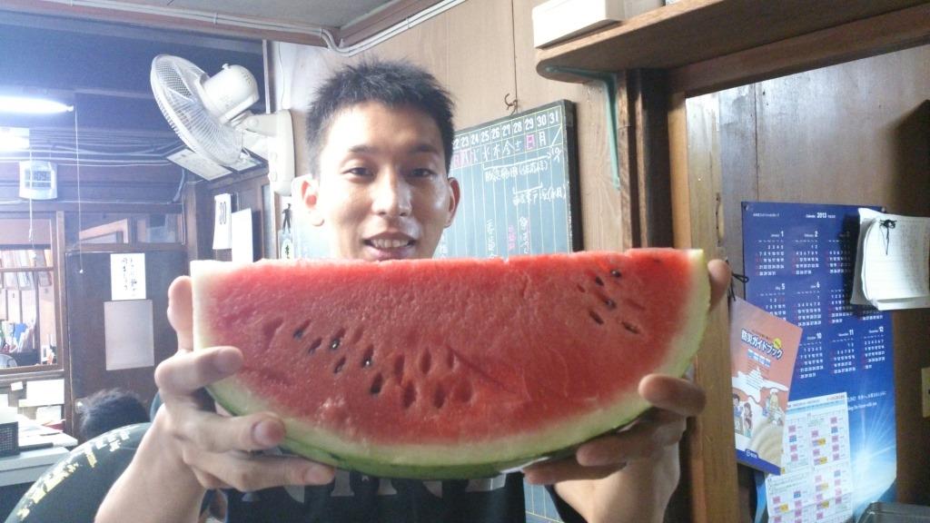 佐藤君の手…でかくてスイカの大きさが目立たんじゃないか。