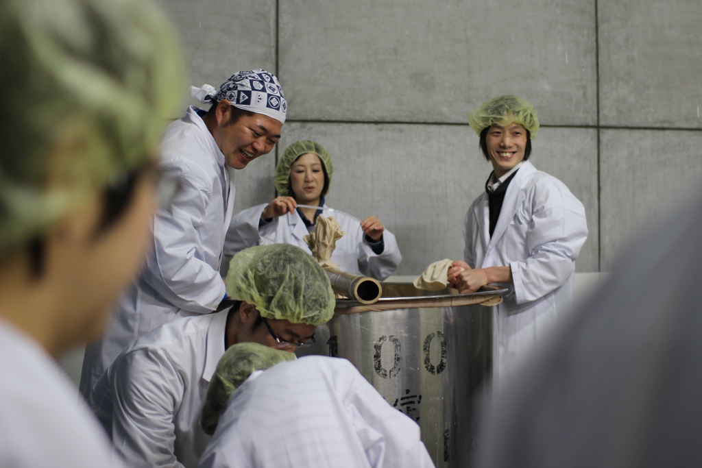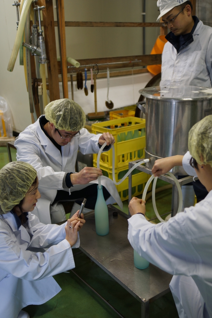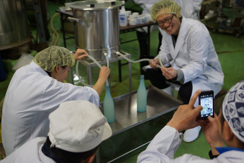 自分たちでお酒を絞って、ボトリング、ラベリング♪