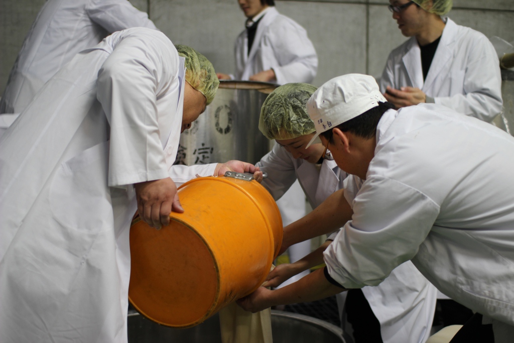 もろみをすくい、タメに受けます。
