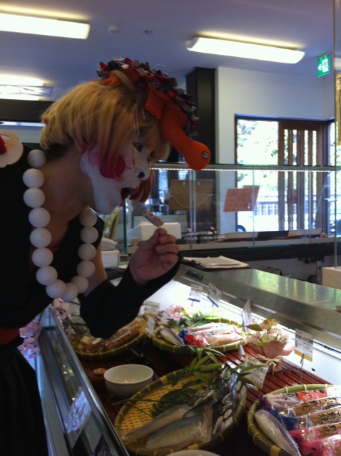 店の者は興味津々で、 しかしながらなんと声をかけてよいのやら・・・(笑)