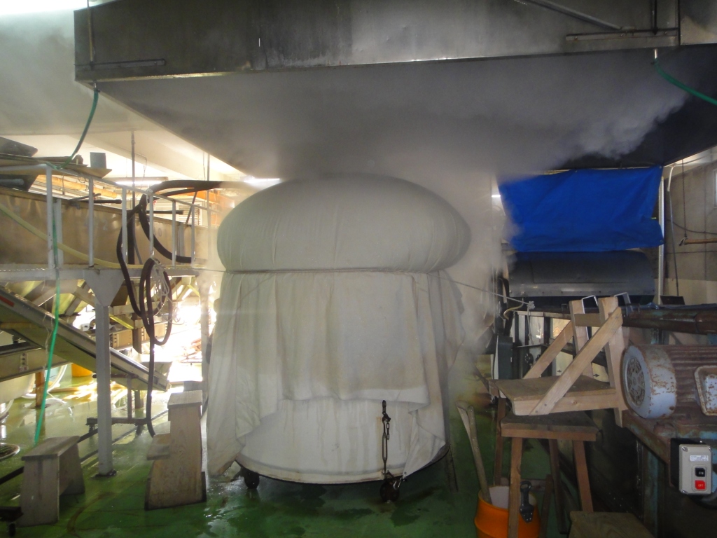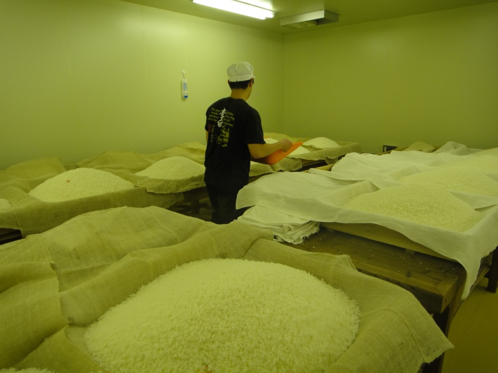 麹は約二晩でできますが、本日二日目。 麹のベッドの入れ替え中でございます。