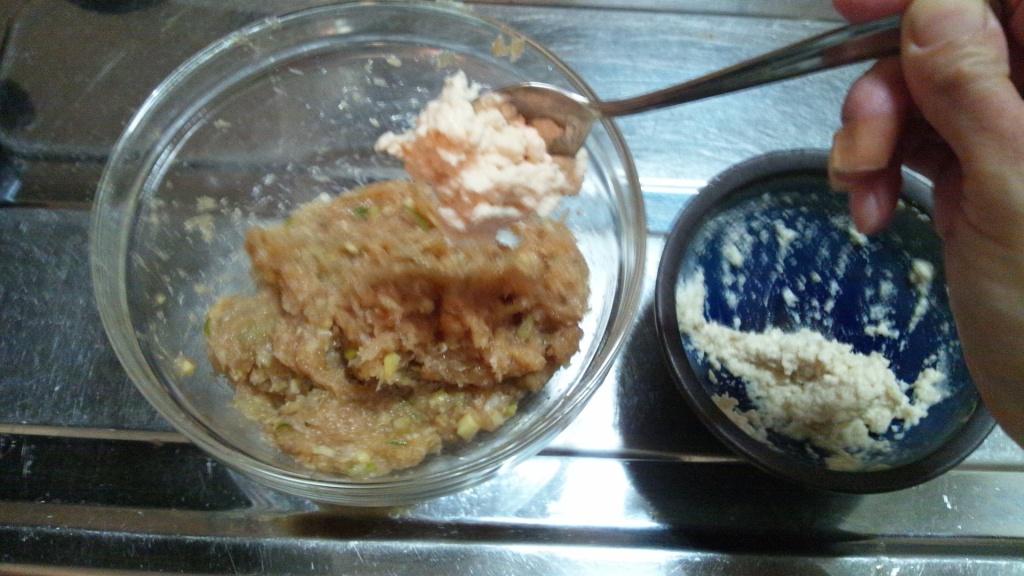 いつも作る鶏団子の材料の中に少し酒粕ペーストを混ぜました。