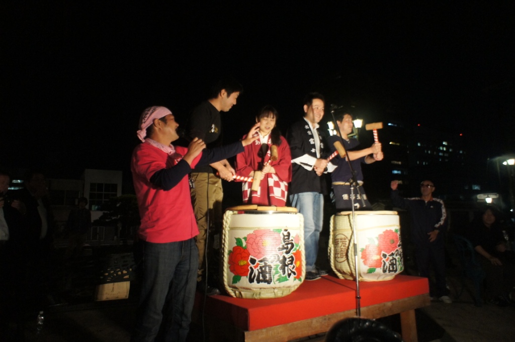 ↑ 20時20分の乾杯の前に 鏡開き! エイヤ!!
