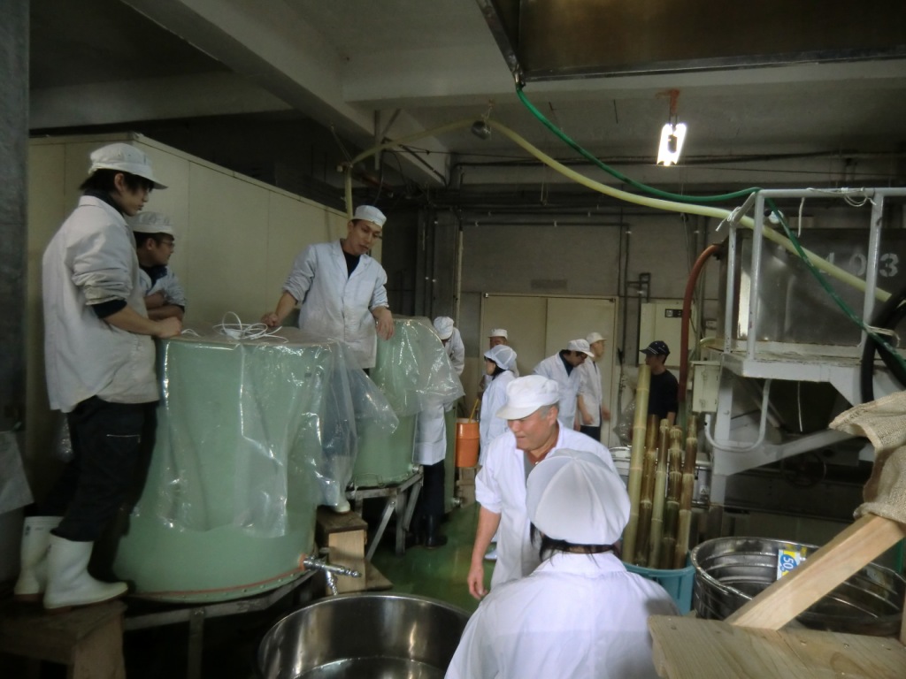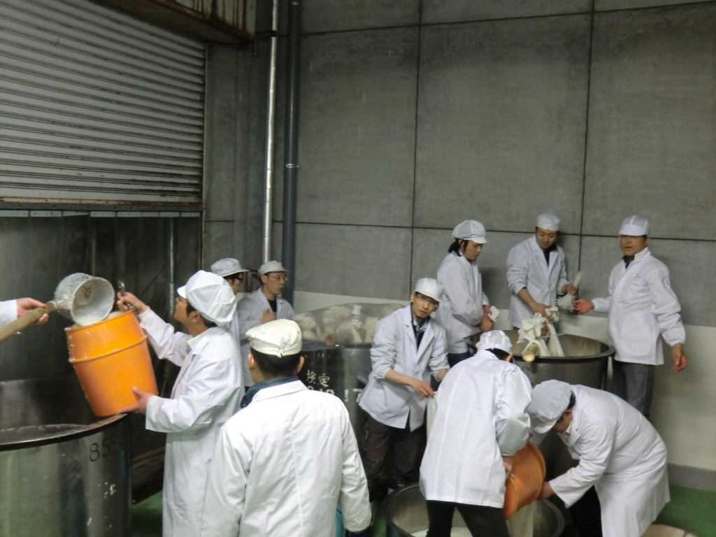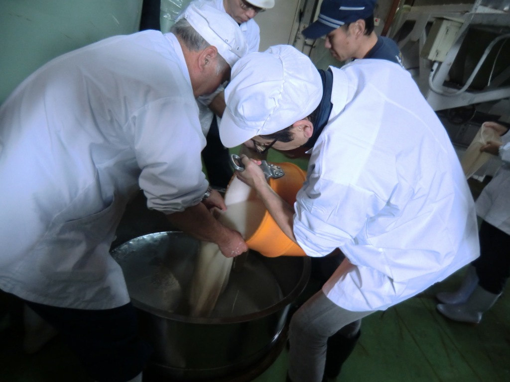もろみを運んで、袋に入れて、