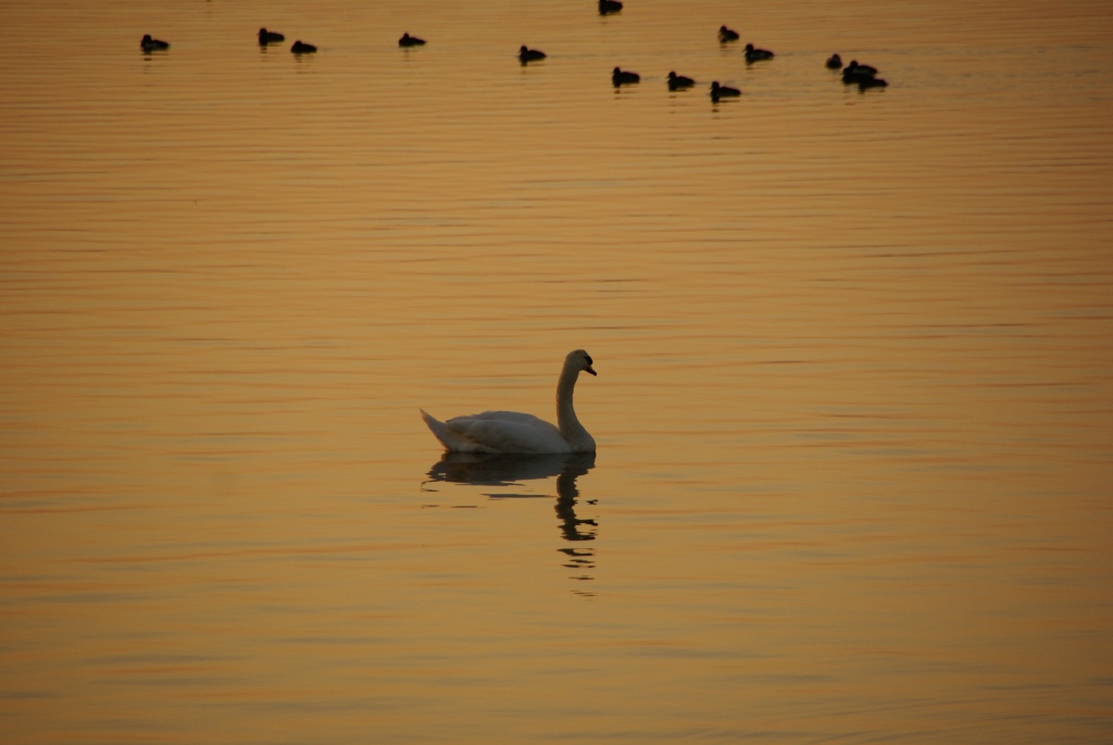白鳥が優雅に泳いでおります。