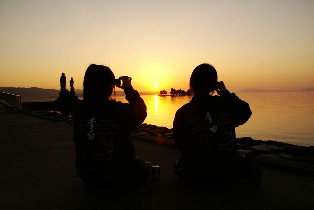 せっかく松江にきたのだから、宍道湖の夕日は見せてあげたいと 連れ出したのです。