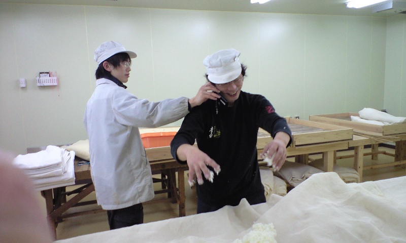 製麹(せいきく・麹を作る作業)中の一コマ。