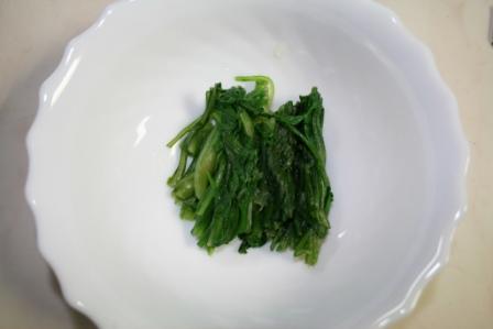 ● 春菊(ほうれん草でも可)を茹でます。