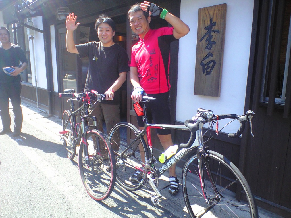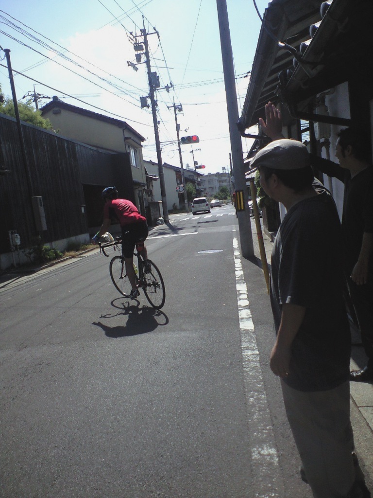 李白 五代目もマイ自転車で応援。