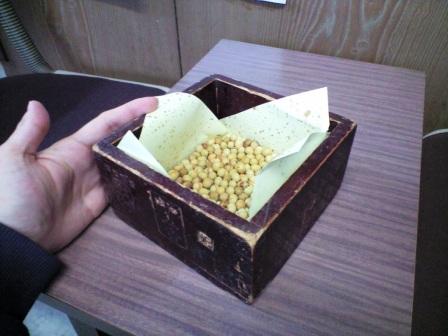 豆を入れた枡は例年通り昔酒用として使われていた枡ですが、