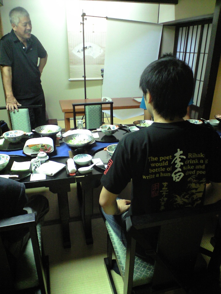 撮影の後はワイワイと楽しく食事をしながら記者の方とお話。