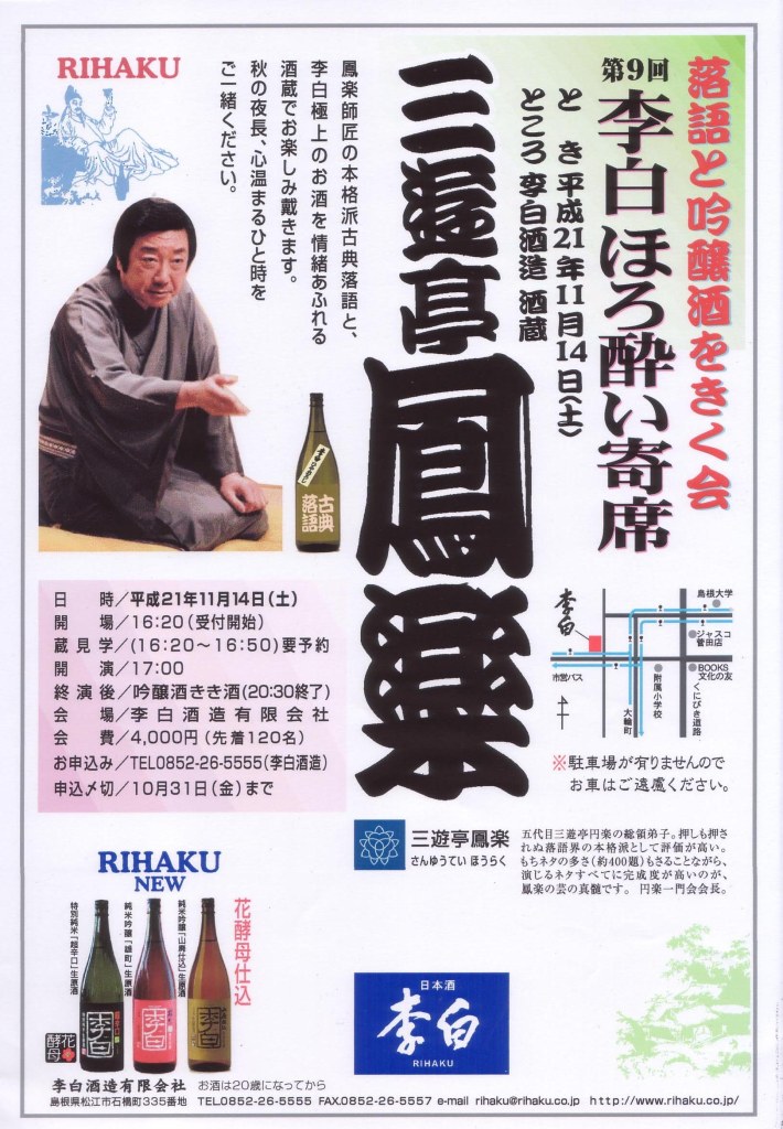 さて、来月は毎年恒例の 李白 ほろ酔い寄席 です。